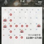 - 2025年12月営業カレンダー今月は店舗営業も出店も少ないです🙇本業も年末ですので忙しくしてお… 続きを読む: 2025年12月営業カレンダー