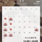 - 2025年2月営業日カレンダー2月2日(日):せせらぎマルシェ 2月8日(土):千の風 2月9… 続きを読む: 2025年2月営業日カレンダー