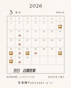 2月2日(日):せせらぎマルシェ 2月8日(土):千の風 2月9日(日):千の風 2月20日(木):そよら新金岡 2月22日(土):すみすみマルシェ 2月23日(日):モノ市 ※空白の日は店舗営業(11〜19時)の予定で […]