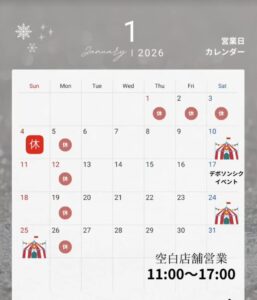 2025年12月営業カレンダー